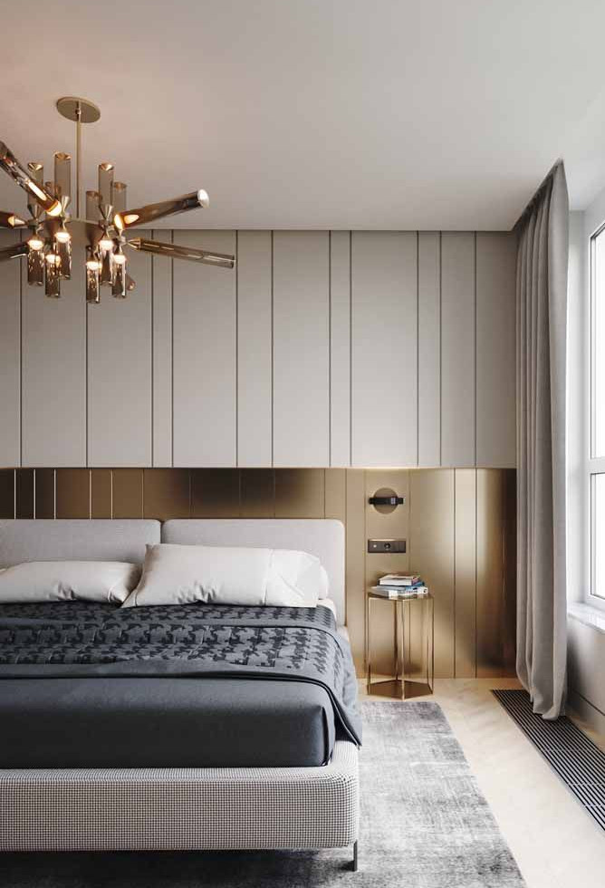 Uma boa solução quando conjugada com uma arquitetura simples onde o dourado se torna o objeto de destaque. E não se esqueça, menos é mais, não deve ser utilizado em demasia nem conjugado com cores muito marcantes correndo o risco de sobrecarregar o espaço.
